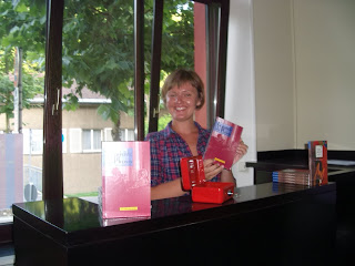 L'Aleksandra Tymczewska, becària del CCL, venent el llibre